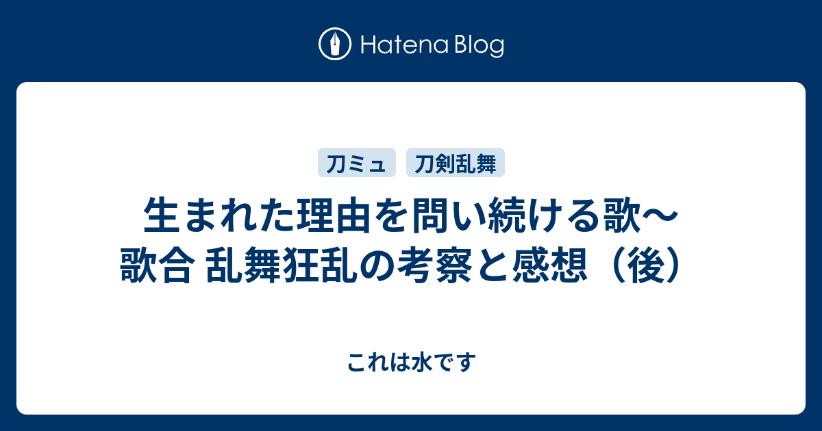 生まれた理由を問い続ける歌 歌合 乱舞狂乱の考察と感想 後 これは水です